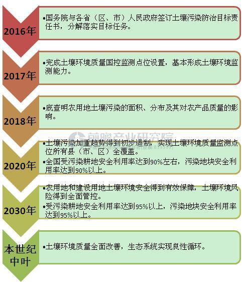 “土十條”對今后一個時期我國土壤污染防治工作做出了全面戰略部署,明確定下了未來兩個五年計劃的目標:到2020年,全國受污染耕地安全利用率達到90%左右,污染地塊安全利用率達到90%以上。到2030年,受污染耕地安全利用率達到95%以上,污染地塊安全利用率達到95%以上。